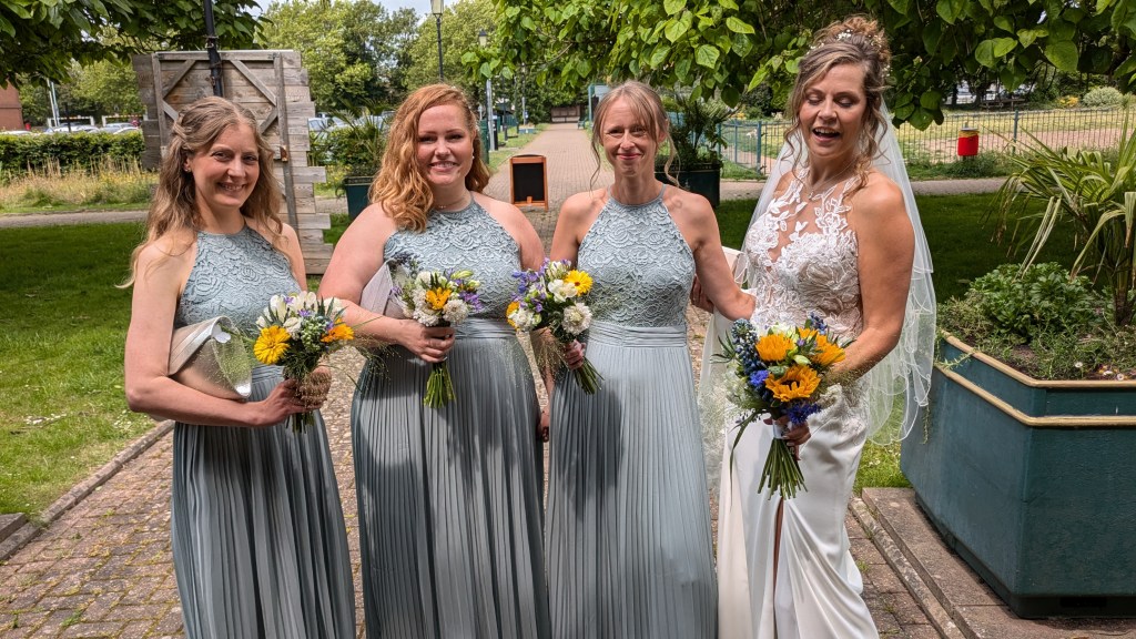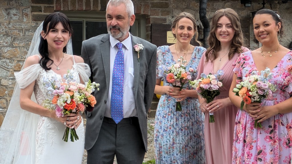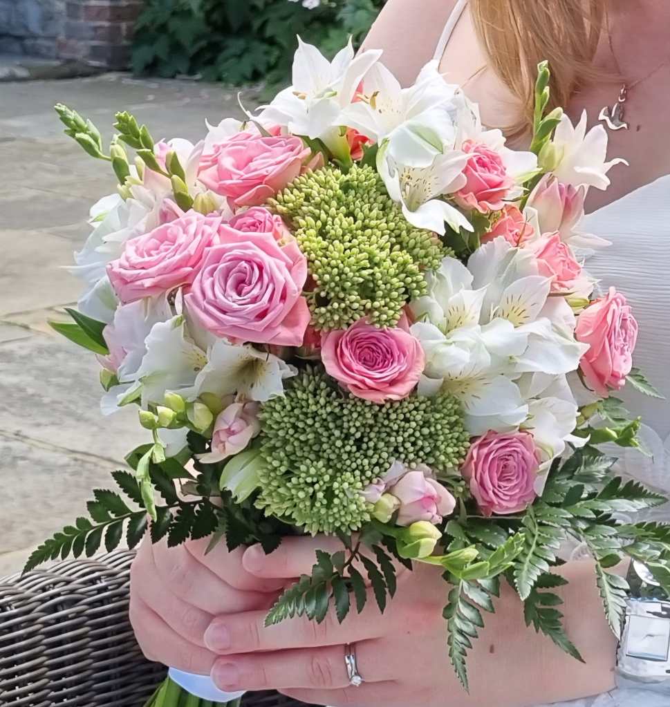 ‘I just wanted to pass on my sincere thanks for the beautiful flowers you prepared for our wedding. The ceremony area looked just perfect with the posies on the wooden stakes. My bouquet was simply stunning, I loved the colours and it still looked great a good week after the wedding, in fact I have only just had to throw them away today.