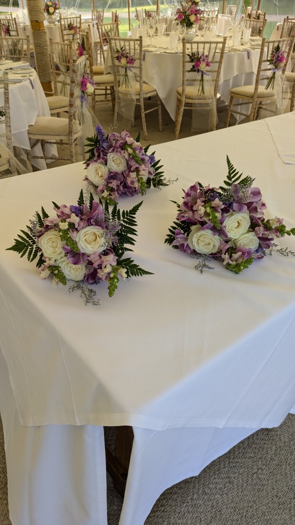 An arrangement for the ceremony table which was then transferred to the top table.Top table arrangementA table top arrangement 15th October 2023Top table decoration. 27.7.2024Ceremony table arrangement. 18.8.2024 Top table arrangement. Burlington hotel, Worthing. April 202511.4.2025 Southend Barns. Donnington, Nr. ChichesterCeremony table. Amberley Castle 31.5.2025Ceremony table. Amberley Castle. 31.5.2025Table arrangements at two Wood, Nr. Storrington, West Sussex. 5.8.2023Ceremony chair decorations. Arundel Town Hall 29.10.2023